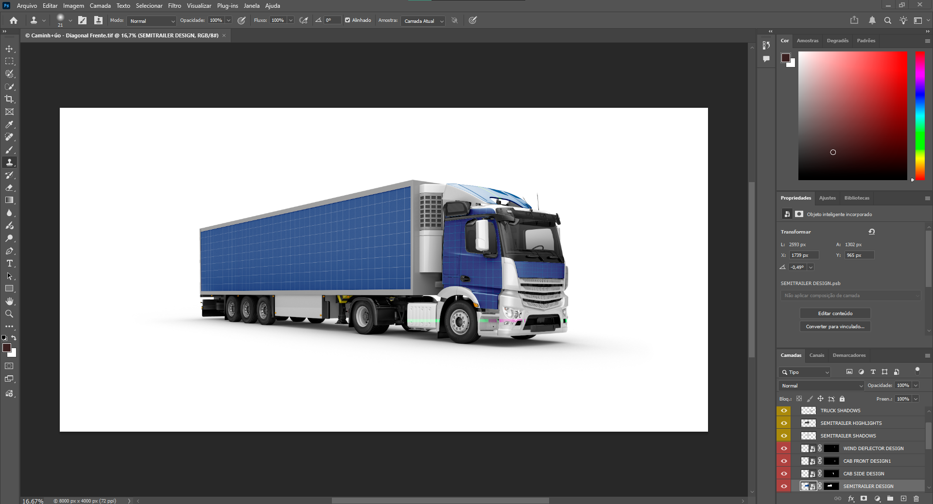 Mockup profissional de caminhão em TIF editável. Alta resolução, layers organizados e aplicação de design via Photoshop. Ideal para envelopamento, adesivos e apresentações automotivas.