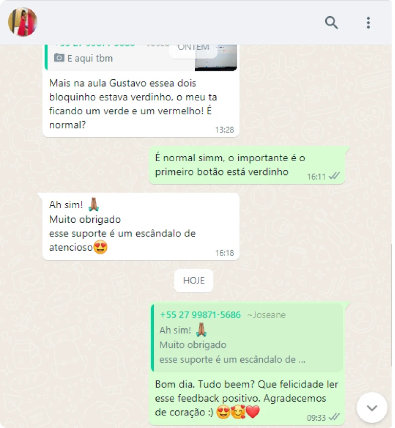 Eu também separei um número de suporte individual no WhatsApp pra você tirar as suas dúvidas com a minha equipe.